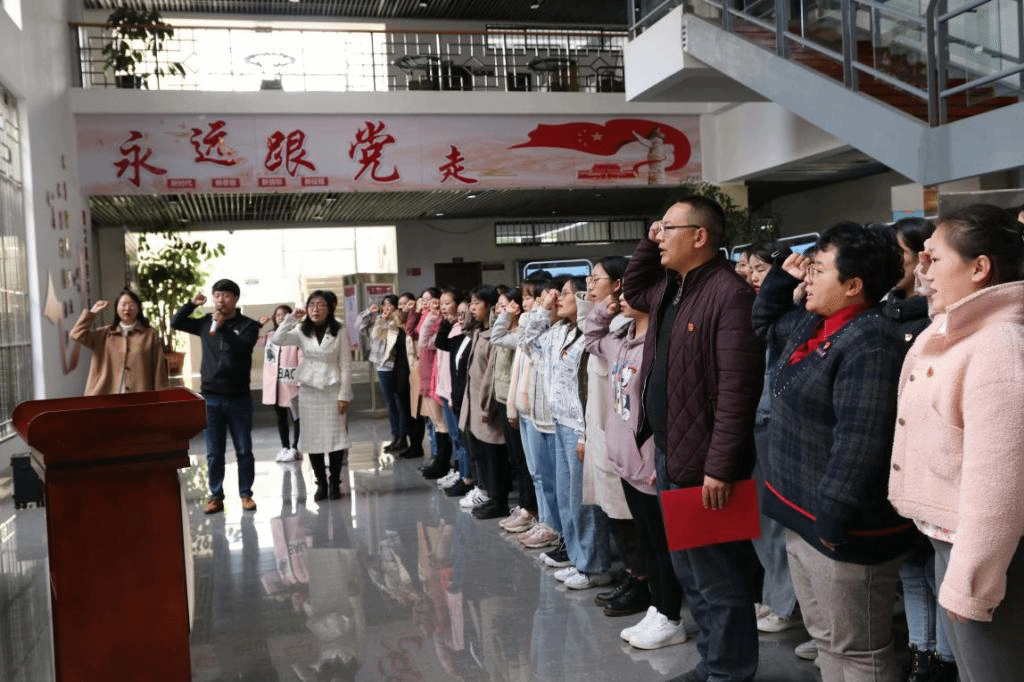 宣誓仪式在庄重的中华人民共和国国歌声中拉开序幕,入党宣誓仪式由刘红军同志领誓,李占芳同志监誓,在场党员右手握拳,庄严宣誓。