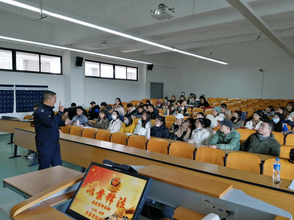 吴家营派出所倪辉警官进行了安全及法制教育专题讲座。倪警官结合真实案例,“以案释法”,以幽默风趣的语言和生动的评述深入浅出地给同学们上了一堂别开生面的安全和法制教育课。同时,倪警官向同学们介绍了如何运用法律维护自己的合法权益,预防犯罪、打击犯罪及自我防范和保障生命安全的一些方法策略,如“防传销网络传销陷阱”、拒绝毒品、远离艾滋、反邪教及“不冒险见网友”等。他还向同学们重申了“金钟罩”防诈骗小程序的重要性,并为同学们讲解了使用方法。