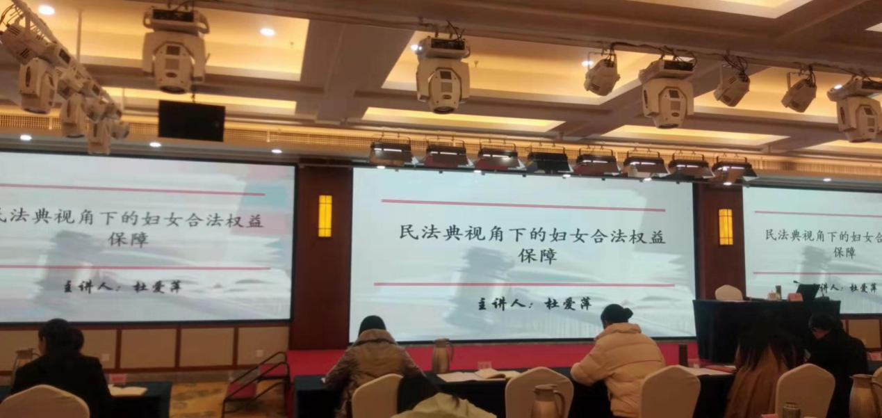 此次专题辅导围绕民法典总则篇、物权编、人格权编、婚姻家庭篇等视角下的妇女权益保障以及对妇联工作的思考等方面展开。杜爱萍老师结合自己广博的知识储备,从民法典视角下妇女权益保障的背景出发,以走近民法典的各项权益为切入点,精心挑选案例,释法说案,对民法典视角下的妇女权益保障问题进行了全面的介绍。