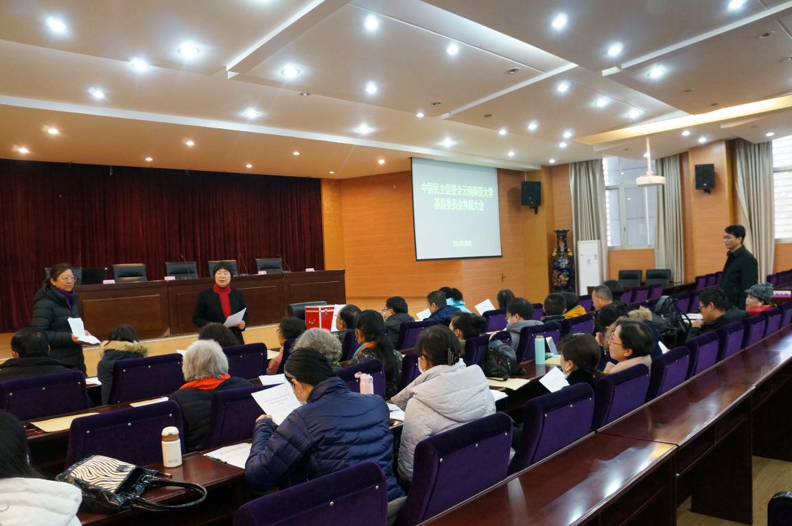 会议选举产生中国民主促进会云南师范大学基层委员会新一届班子成员:主任委员孙俊,副主任委员杨吉华、何其敏、张怀素,委员卢石英、姚韵松、唐唯。