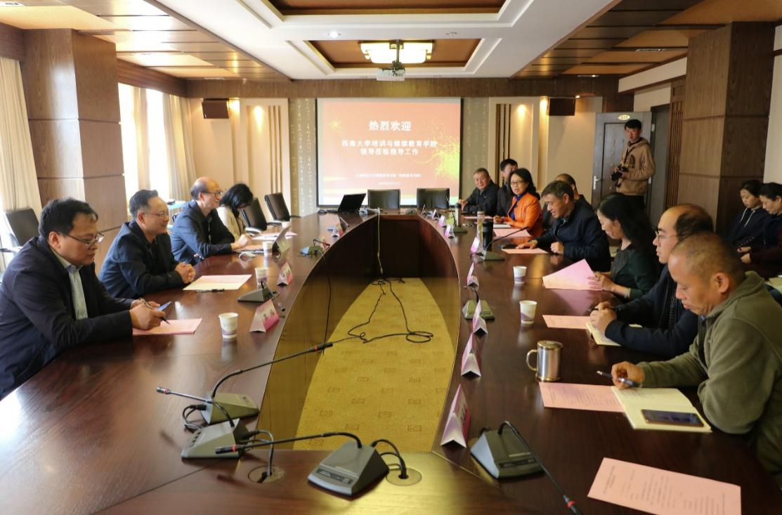 3月11日,西南大学培训与继续教育学院罗朝明院长一行4人到我校继续教育学院,就继续教育办学经验、队伍建设、信息化建设及教育培训合作等工作进行座谈交流。西南大学培训与继续教育学院副书记(副院长)曾跃林、副院长刘永凤、培训部主任莫鸿,云南省教育厅高教处阚检乖老师,我校继续教育学院党委书记肖飞、院长唐瑛及其他班子成员和学院全体科级干部参加了座谈会。座谈会由继续教育学院党委书记肖飞主持。