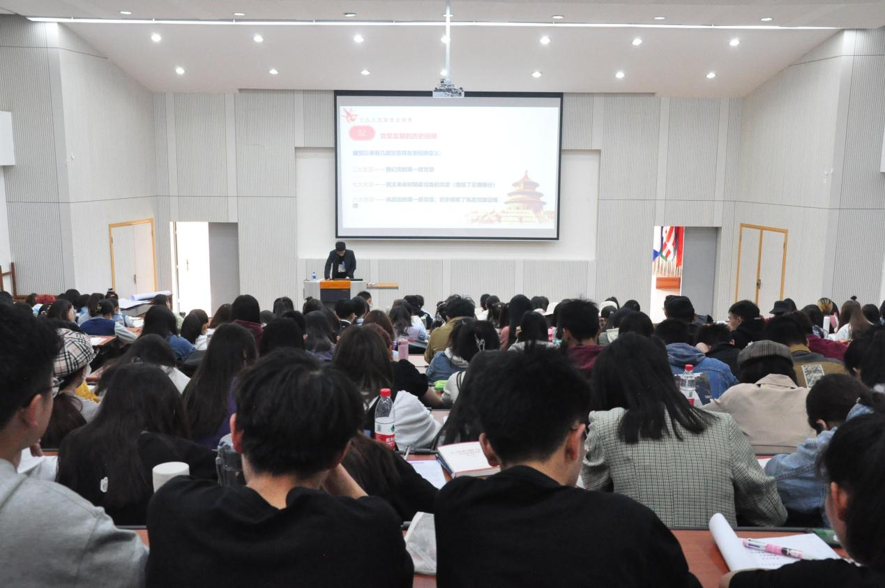 4月10日上午,传媒学院党委副书记王平平老师以“学习党章,践行党章”为主题,为入党积极分子进行了第三次专题辅导。他阐述了“十九大党章修改背景”“学习贯彻党章的意义”“十九大党章修改的主要内容”等几个重要问题,并为各入党积极分子详细解读了党员应尽义务,希望同学们在以后的学习过程中深刻理解党员义务,认真履行党员责任。