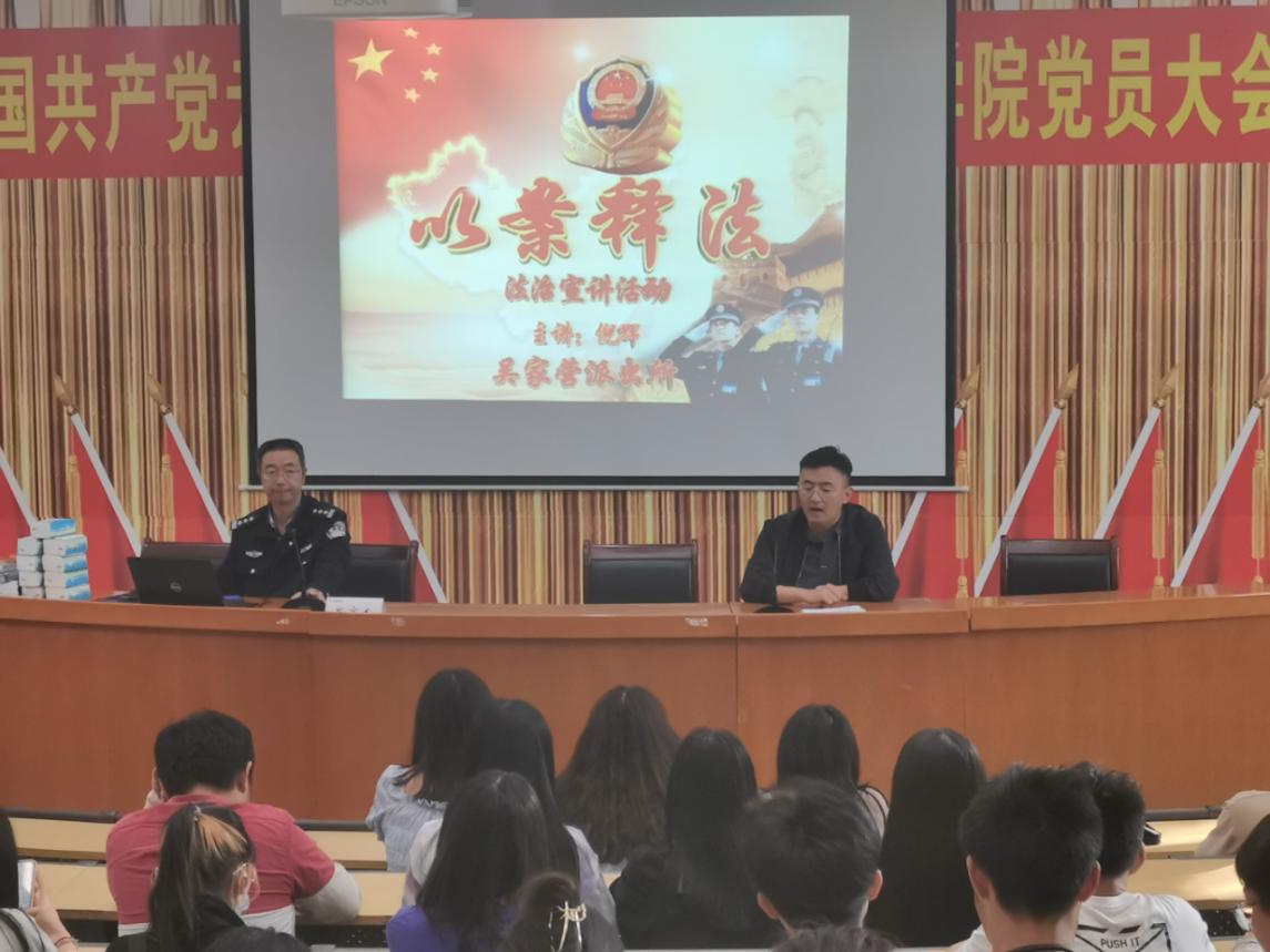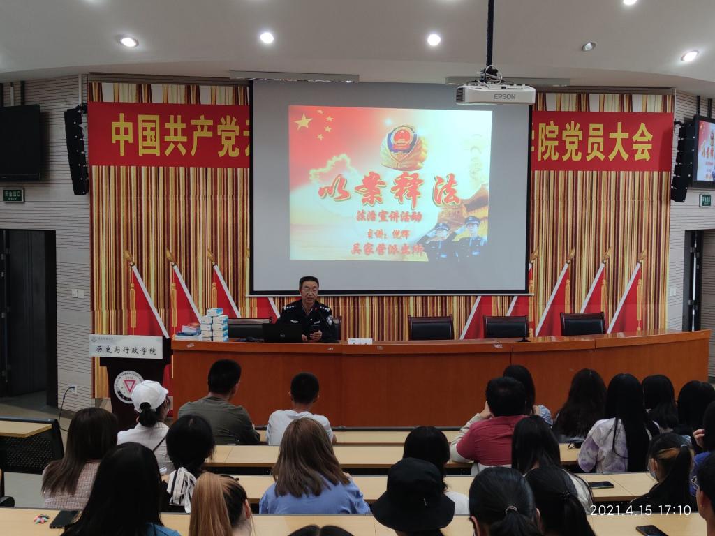 为提高学生安全防范意识,有效防范校园诈骗,历史与行政学院邀请昆明市公安局呈贡分局民警、深受大学生喜爱的“反诈先锋”倪辉警官于4月15日下午在明德楼3号楼报告厅带来《以案释法——如何有效防范电信诈骗》的专题讲座,学院200余名学生参加,讲座由学院党委副书记徐振坤主持。