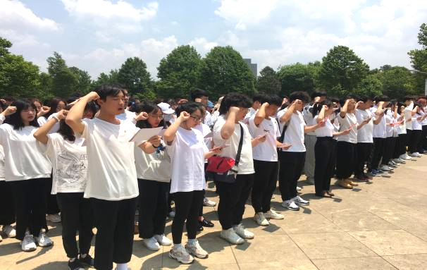 最后,全体人员高唱团歌,入团仪式在昂扬的团歌声中落下帷幕。