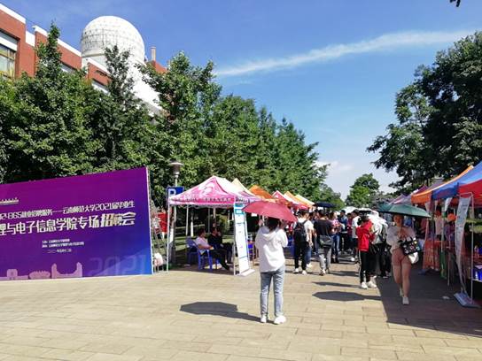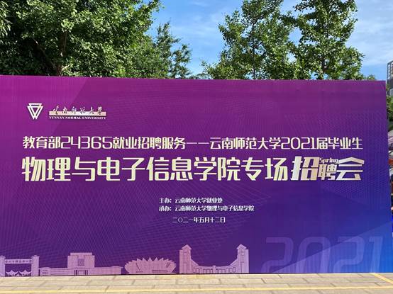 为积极响应党中央、国务院“稳就业”“保就业”工作的重要决策部署,将国家、云南省关于2021届大学毕业生在疫情防控期间就业工作的相关指示落到实处,推进2021届毕业生就业工作有序进行,加强学院与社会各用人单位的交流合作,为毕业生提供更多就业渠道,引导毕业生树立正确的择业观,尽快落实就业单位。学院为用人单位和毕业生搭建高效、可靠的双向交流选择桥梁,于2020年5月12日在呈贡校区睿智1号楼前举办“云南师范大学物理与电子信息学院2021届毕业生专场招聘会”。