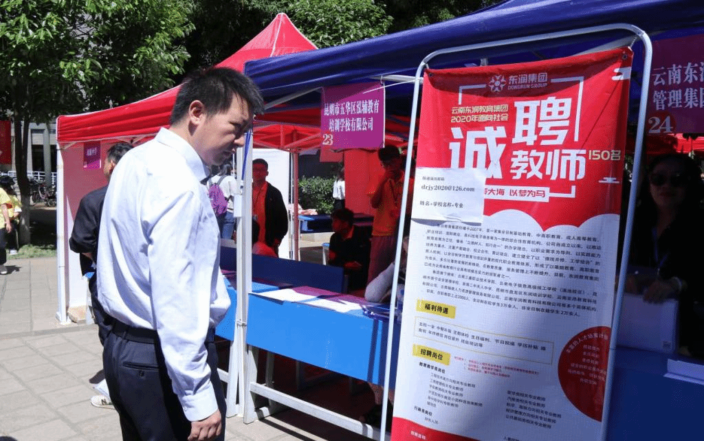 五月的昆明早晨微凉,但来参加招聘会的同学络绎不绝,现场气氛热烈。据悉,参加本次招聘会的单位有云南师范大学附属中学、云南师范大学实验中学、建水实验中学、云南农业大学附属中学、云南师范大学附属中学第二中学、昆明市盘龙区汇承中学、云南经济管理学院附属高级中学等50余家,涵盖教育、金融、信息技术与互联网等行业领域,岗位种类繁多,共提供3000余岗位,签约率达到10%。