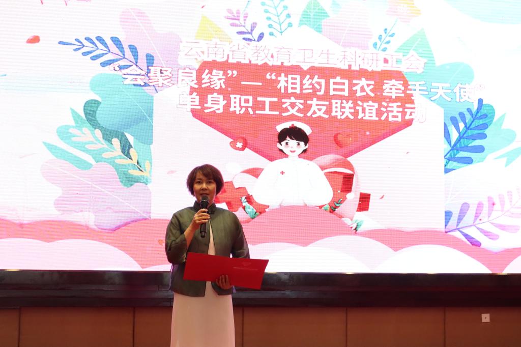云南省教育卫生科研工会二级调研员、女工委主任田咏华在讲话中表示,广大职工干部长期奉献在工作岗位上,缺乏交友的机会,此次活动正是旨在搭建一个交友的平台,让各单位职工相识相知、收获幸福,并鼓励大家展现风采、积极勇敢地参与活动。