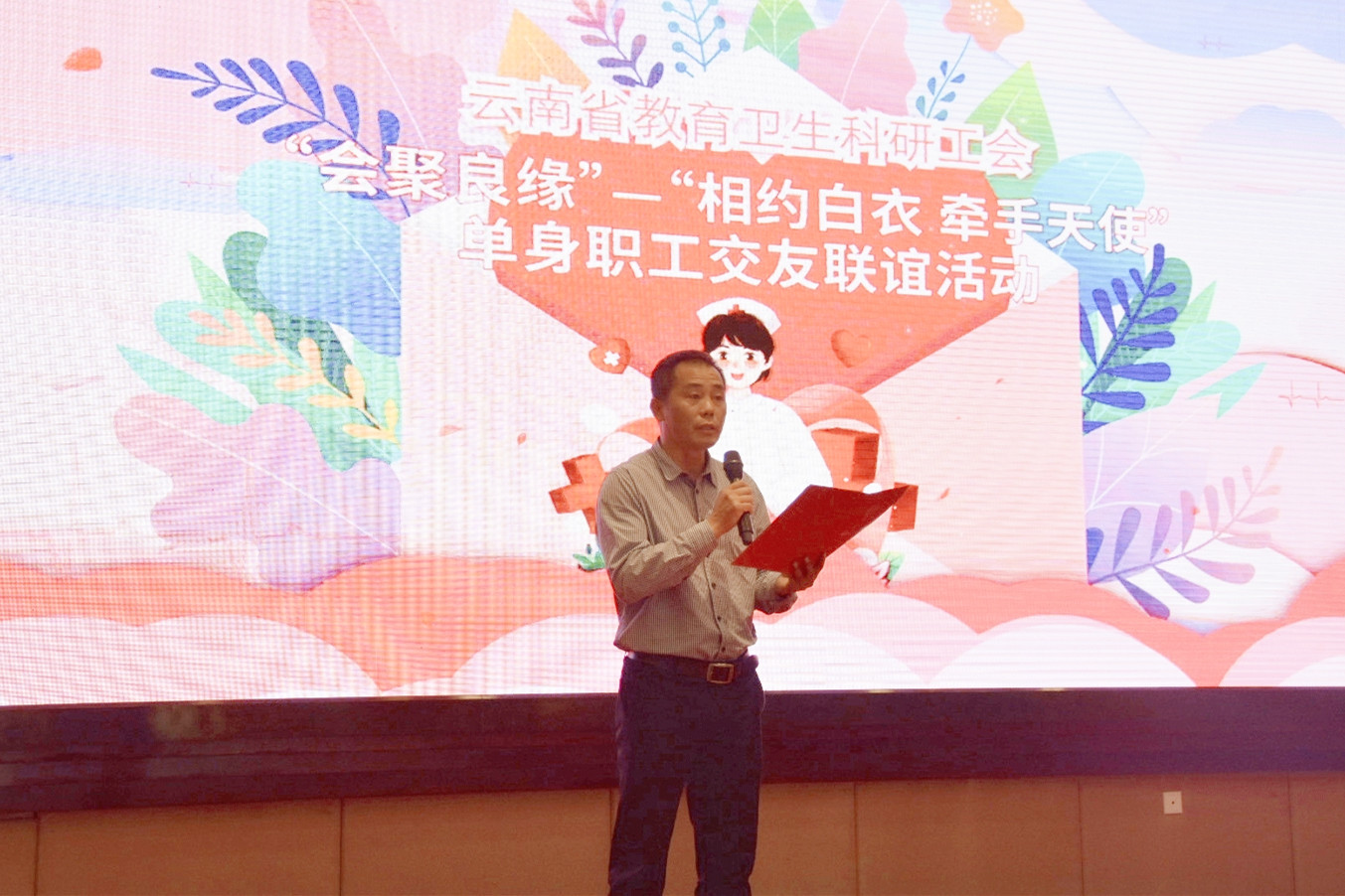 活动在云南省总工会女职工部部长余庆湘的宣布下正式开始,昆明医科大学第一附属医院郭静、云南省第一人民医院李麟辉分别代表单身女职工、单身男职工发表交友宣言,号召大家敞开心扉、结识朋友。