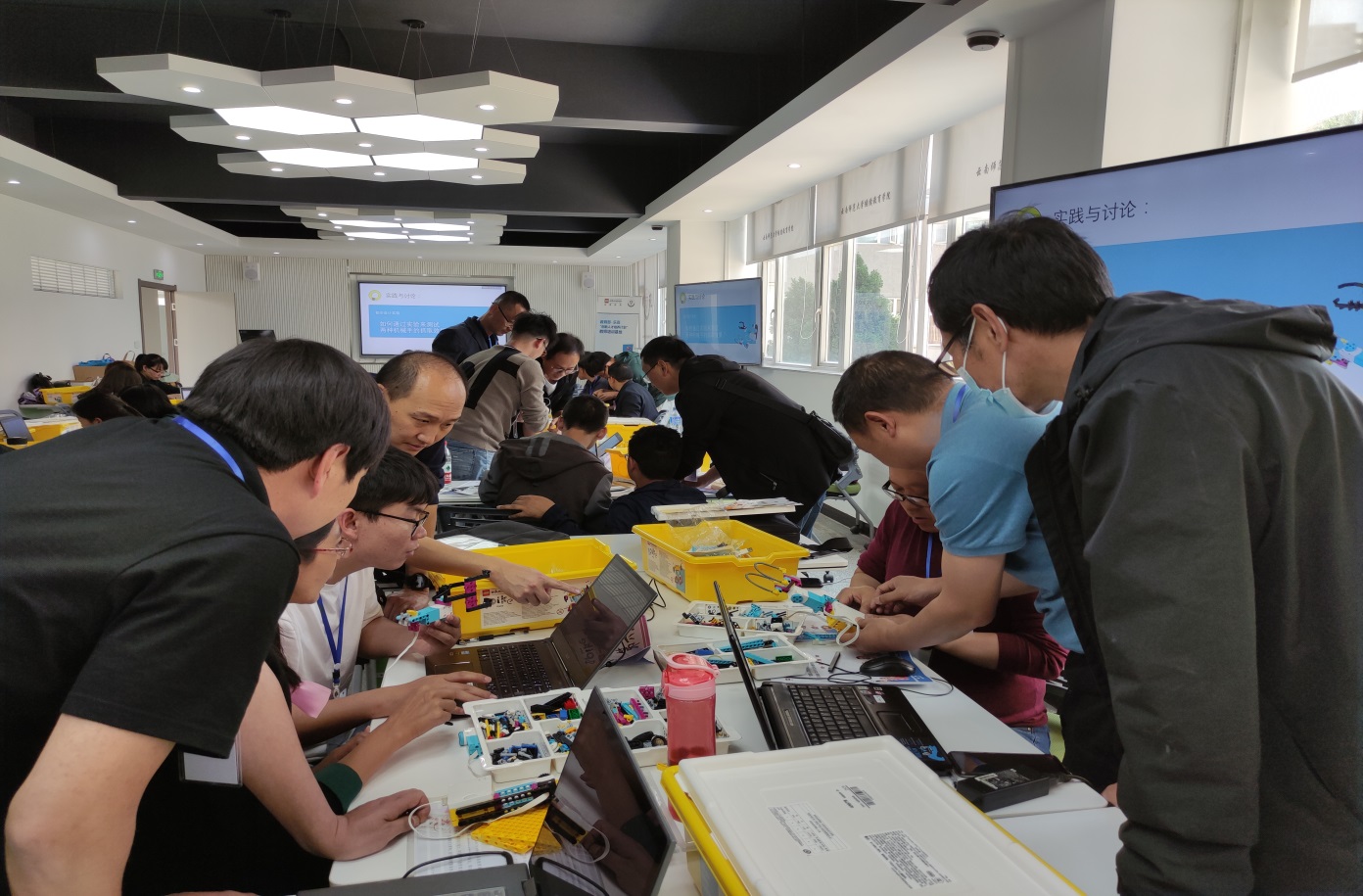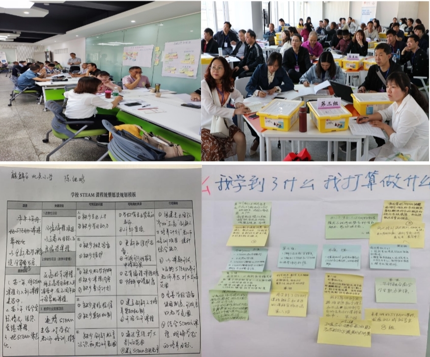 培训以“创新人才培养课程的设计与组织”为主题,以乐高教育课程为例,旨在帮助参训的学校管理者提高创新人才培养的课程设计能力,掌握跨学科教学组织的方法,以及学校课程整合的模式与策略,提升创新教育素养。内容包括创新人才培养变革与乐高创新教学体验、创新教学模式及5E教学体验、STEAM课堂教学的评价与反馈、学校创新教学愿景设计与课程统整规划。培训以“信”“知”“行”“化”为线索,关注学员体验及互动活动,强调教学体验与合作建构,将创新人才培养中的课程设计与评价、学校组织实施的能力培养渗透到“理念引导”“活动体验”“动手实践”“案例点评”“范例观摩”“交流反思”等活动方式中。参加培训的老师以学校STEAM教育创新发展的项目式学习为切入点,完成了从组建团队,建成社团、校本、学科三级课程体系,建立STEAM教学团队,到开展跨学段、跨学科教研的设想。
