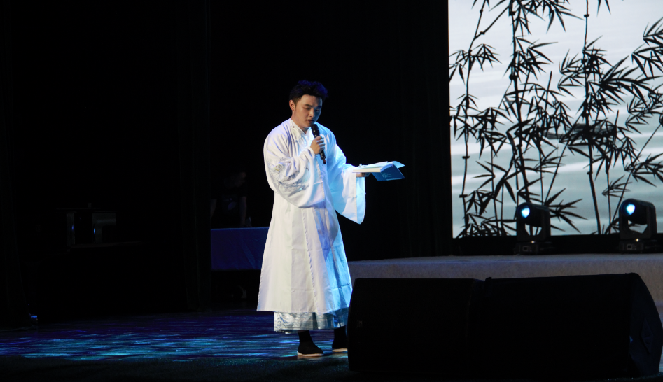 本期“美育大讲堂”融音乐、书法、诗朗诵等艺术形式于一体,可谓“书法融音乐,韵律谱华章”,这充分体现了本讲堂“汇聚名家、普及经典”的宗旨。伴随暖场音乐,传媒学院刁斌同学的一首配乐诗朗诵《兰亭集序》,拉开了本期“美育大讲堂”活动的序幕,营造了浓浓的书法氛围,自然引出了兰亭学专家毛万宝教授的讲座《美学家眼中的书法鉴赏》。