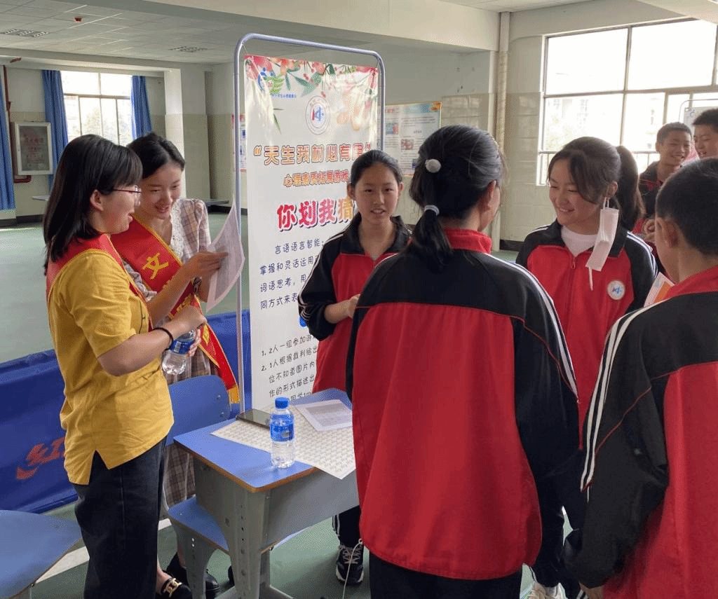 文学院志愿者参加了中小学心理健康日启动仪式以及“天生我才必有用”心理素质拓展活动。此次心理素质拓展活动面向初一学生展开,以“多元智能理论”为基础,设计了心理素质拓展游戏,游戏设置符合该年龄段学生的认知特点,契合学生日常关注度较高的生活热点,内容丰富,教育意义极强,包括“穿越火线”“足球小将”“节奏达人”等14个游戏。通过游戏帮助初一学生发现自己的智能优势,形成对自己的积极评价,优化学生自我认知,提升学生的自信心。