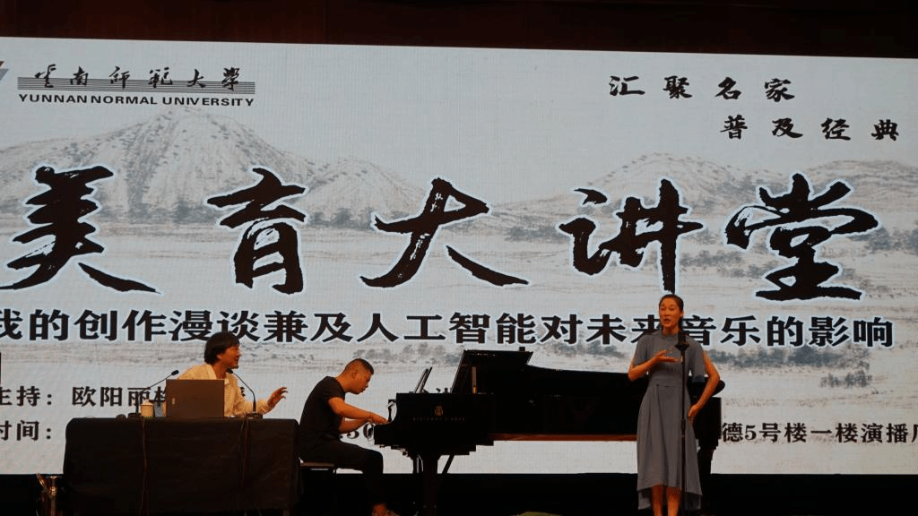 6月3日上午,云南师范大学第六期“美育大讲堂”在明德5号楼一楼演播厅成功举办。音乐舞蹈学院党委副书记杨进勐、副院长欧阳丽梅、副院长彭莉出席了本次活动。活动邀请了中央音乐学院李小兵教授为主讲嘉宾,主讲题目为《未来已来,你准备好了吗?——我的创作漫谈兼及人工智能对未来音乐的影响》。