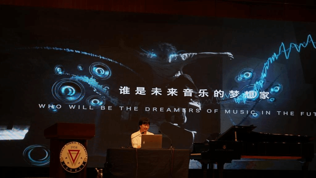 李小兵教授自己创作的云合唱作品《我们》作为开场,向大家展示通过云端和人工智能技术,实现万人合唱的可能性。他围绕未来科技如何改变音乐,未来的音乐会是怎样的,谁会是未来音乐的创作者,谁是未来音乐的表达者,谁是未来音乐的教育者,谁是未来音乐的梦想家等问题探讨了未来音乐的无限可能。李小兵教授还音乐创作上是否机器可以代替人,机器的创作是否有情感展开讨论,并向大家展示了AI自动作曲软件在随机输入歌词后,30秒内创作出一首有伴奏有演唱的歌曲。李小兵教授还向大家介绍了目前最前沿的人工智能与音乐表演和音乐教育、3D音乐、音乐与脑科学等课题。