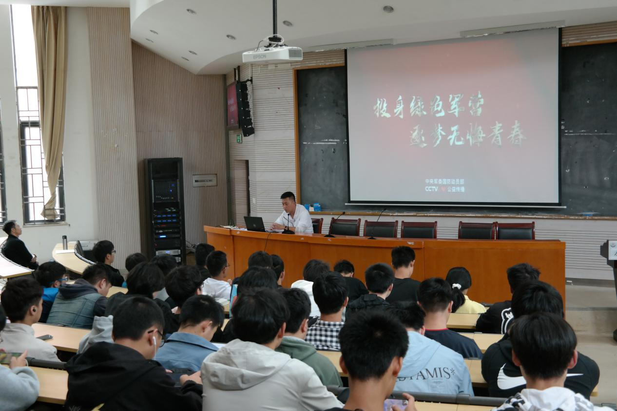 最后,周鹏老师介绍了参军入伍的优惠政策,他鼓励同学们要增强国防观念与集体意识,弘扬以爱国主义为核心的民族精神,为国家发展、民族振兴贡献自己的青春智慧。会上,他还向同学们详细解读了参军入伍的要求、报名渠道、参军后休学、复学及升学等相关政策。