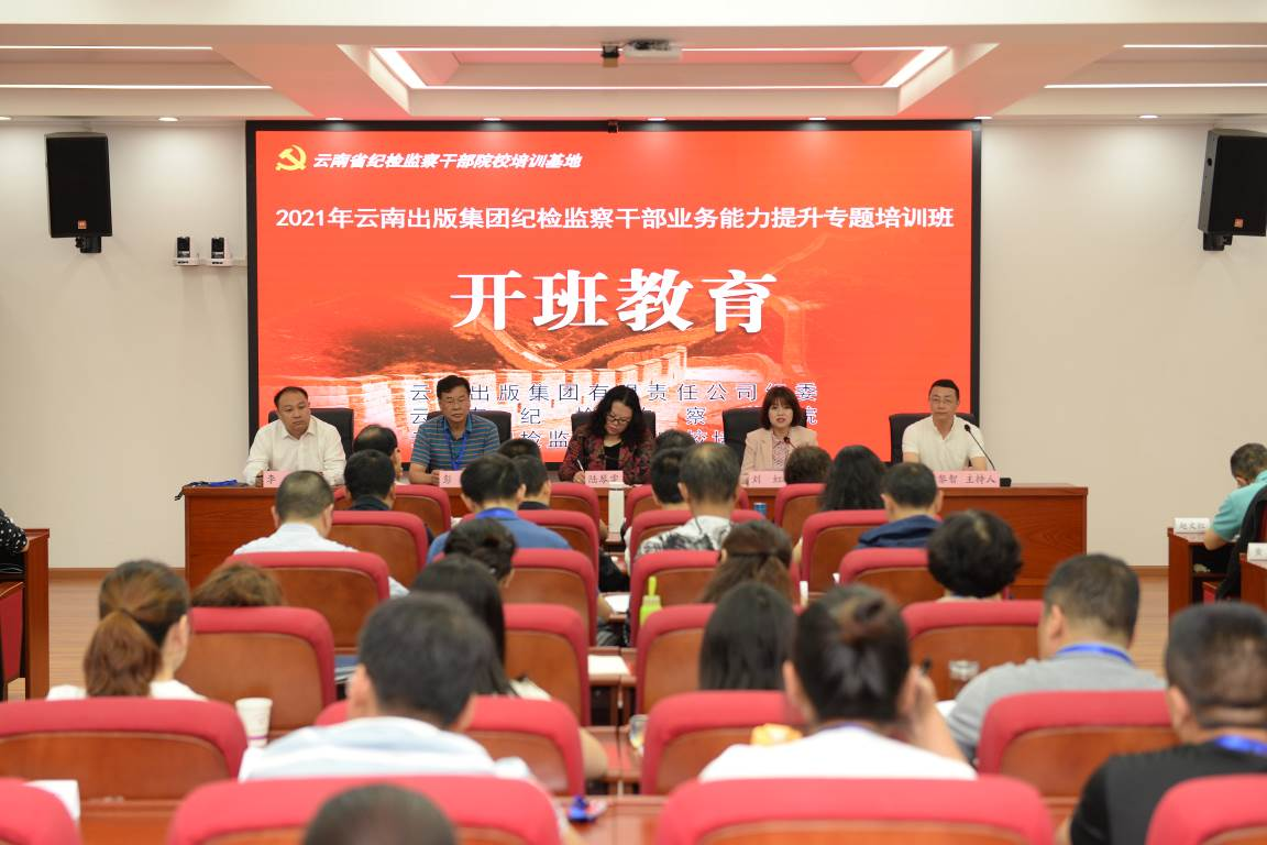 6月23日上午云南出版集团党委委员、纪委书记、云南省监委驻出版集团监察专员陆琴雯,我校职业技术教育学院党委书记刘虹,云南出版集团纪委副书记、集团党委巡察办主任彭云,云南出版集团纪委副书记李刚,以及培训班全体学员、云南省纪检监察干部培训基地相关工作人员出席了开班教育,会议由我校职业技术教育学院副院长王黎智主持。