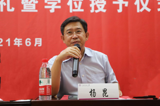 毕业典礼在庄严的国歌声中拉开序幕。学部主任杨昆教授致辞说到,我们成长和发展在中国这个伟大的国家,这个崭新的时代,我们要始终保持创新精神,在认识和实践中勇于突破。勤于学习,勤于思考,更要善于捕捉机遇,不断成长不断收获。祝愿所有毕业生都有一个灿烂的前程,一个美好的人生!
