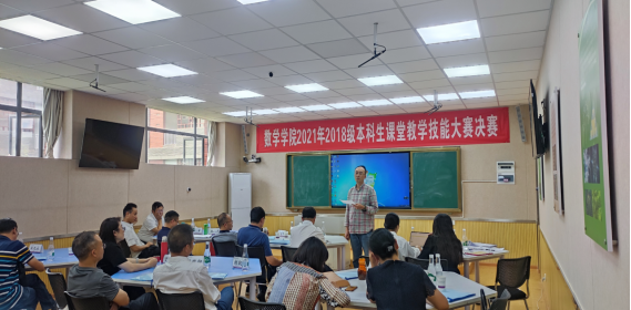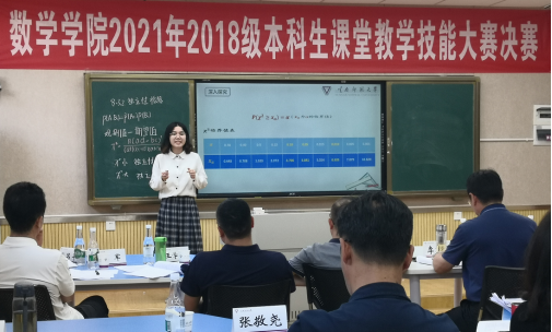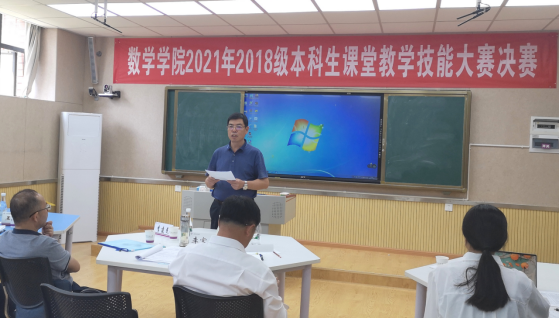 为提高师范生的教育教学能力、丰富校园文化生活、增强自信、提高专业技能,数学学院于4-7月举行了2018级本科生课堂教学比赛。本科生课堂教学比赛是提高师范生教学技能的重要途径之一,要求“全员参与、全院参与”,即每级学生在大三下学期“全部师范生”积极参加教学比赛,认真准备,通过比赛促进师范生教学技能和教学素养的提高;“全院教职工”参与教学比赛,开展讲习、课堂教学辅导、担任评委等。此次课堂教学比赛按初赛、复赛和决赛依次进行。本次大赛从教师口语、教态、课程内容设计、重难点把握、教法学法、信息技术使用、板书设计、说课能力等方面对选手进行综合考核。