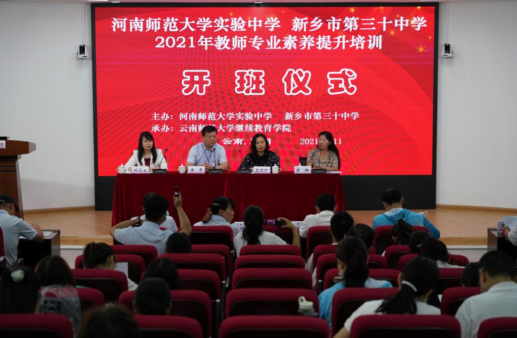 7月11日上午,开班仪式在我校一二·一西南联大校区明远楼一楼报告厅举行,河南师范大学实验中学徐华校长、新乡市第三十中学屈新红校长、继续教育学院唐瑛院长、刘应兰副院长以及135名培训学员参加开班仪式。开班仪式由刘应兰副院长主持。