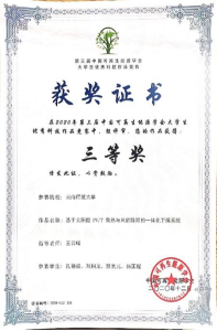 云南师范大学2017级农业建筑环境与能源工程专业本科生张海麟同学以第一作者在《Energy & fuels》上发表“Progress toward application of perovskite solar cells”的综述论文,指导教师/通讯作者为课题组季旭教授。文章从结构改进以进一步增强PCE、材料稳定性和寿命提高、大面积制备、有毒成分的替代、性能表征中滞后的解决等方面总结了近期的研究进展。作为共同作者发表论文“基于CFD模拟的住宅小区风环境的优化研究”、“基于风环境优化的住宅小区布局模式研究—以温和地区中等容积率的住宅小区为例”。作为负责人主持省级大学生创新训练项目“太阳电池方阵的一种无人机检测和清洗装置”,作为参与者参与省级大学生创新训练项目“微生物燃料电池供电渗析脱盐研究”,目前都已结题。
