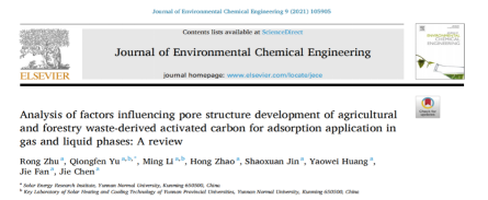 云南师范大学2018级新能源材料与器件专业本科生朱蓉近期以第一作者在《Journal of Environmental Chemical Engineering》(中科院二区,IF=5.909)发表了“农林废弃物资源化利用制备活性炭及其应用”的综述论文,指导教师/通讯作者为课题组余琼粉副教授。该工作系统总结了农林废弃物基活性炭的不同制备方法及其主要制备条件对孔结构形成的影响。朱蓉同学本科期间在碳除湿功能材料构建与电热再生、太阳能干燥除湿回热方面主持并完成科研训练基金,主持和参与多项与学科相关的创新创业竞赛并获奖。