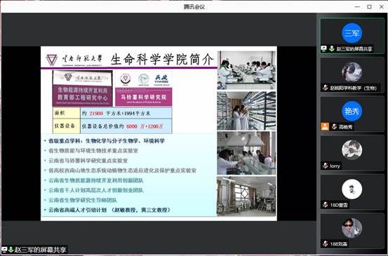 第三阶段,学院副院长赵三军老师详细介绍了学院硕士研究生招生情况和学科建设及发展情况。他指出近几年来生科学院硕士研究生招生人数逐年增多,持续向好。同时,他详细介绍了学院各个优秀的导师团队和实验室的情况,并勉励同学们积极报考本院的硕士研究生。
