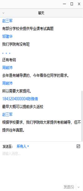 会议最后,参会同学就考研和就业的具体问题进行了提问交流。副院长周峻沛老师、赵三军老师以及参会的其他老师做了细致的回答。