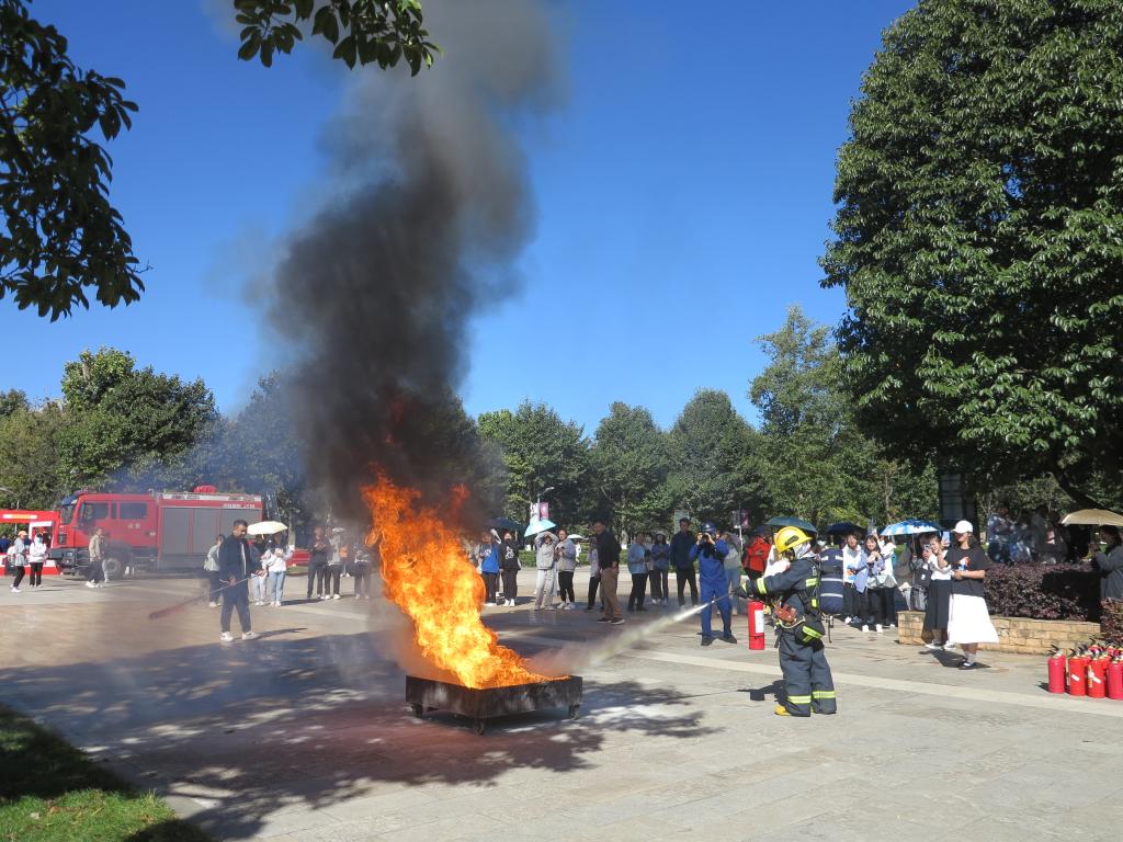 为进一步提高全校师生员工的消防安全意识和面对突发火情的应急处置能力,全面落实云南高校消防安全工作会议和呈贡区“消防安全宣传月”工作要求11月11日上午,学校保卫处联合呈贡消防应急救援大队、昆明市消防安全应急服务中心、昆明日报社和校团委等多家单位在主校区红烛广场举办消防安全月活动。呈贡消防救援大队、昆明市消安应急服务中心、昆明日报社、校团委,以及保卫处全体工作人员全程参加此次活动。