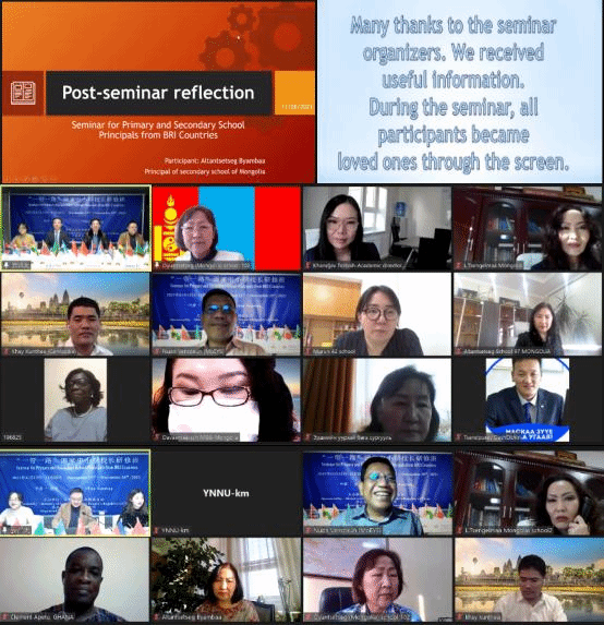 本次研修班学员来自亚洲、大洋洲、北美洲、非洲四个大洲,柬埔寨、古巴、基里巴斯、蒙古、赞比亚、加纳、乌兹别克斯坦七个国家,共44名校长参加。本次研修班采用线上“云研修”模式,为期14天,安排了专题讲座、专题研讨、云参观及文化体验,学员通过直播与录播方式进行研修,圆满完成了各项研修活动。