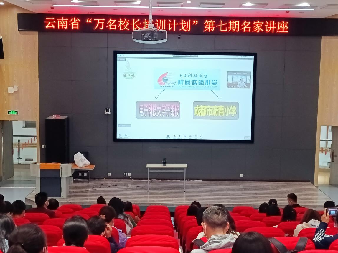 4月8日下午,云南省“万名校长培训计划”第七期“名家讲座”第十二讲开讲。电子科技大学附属实验小学校长、正高级教师康永邦作了题为《我是怎样当校长的:兼谈“新学堂”的教育主张》专题讲座。讲座由本期学员昆明市禄劝县幼儿园吴思瑶老师主持。