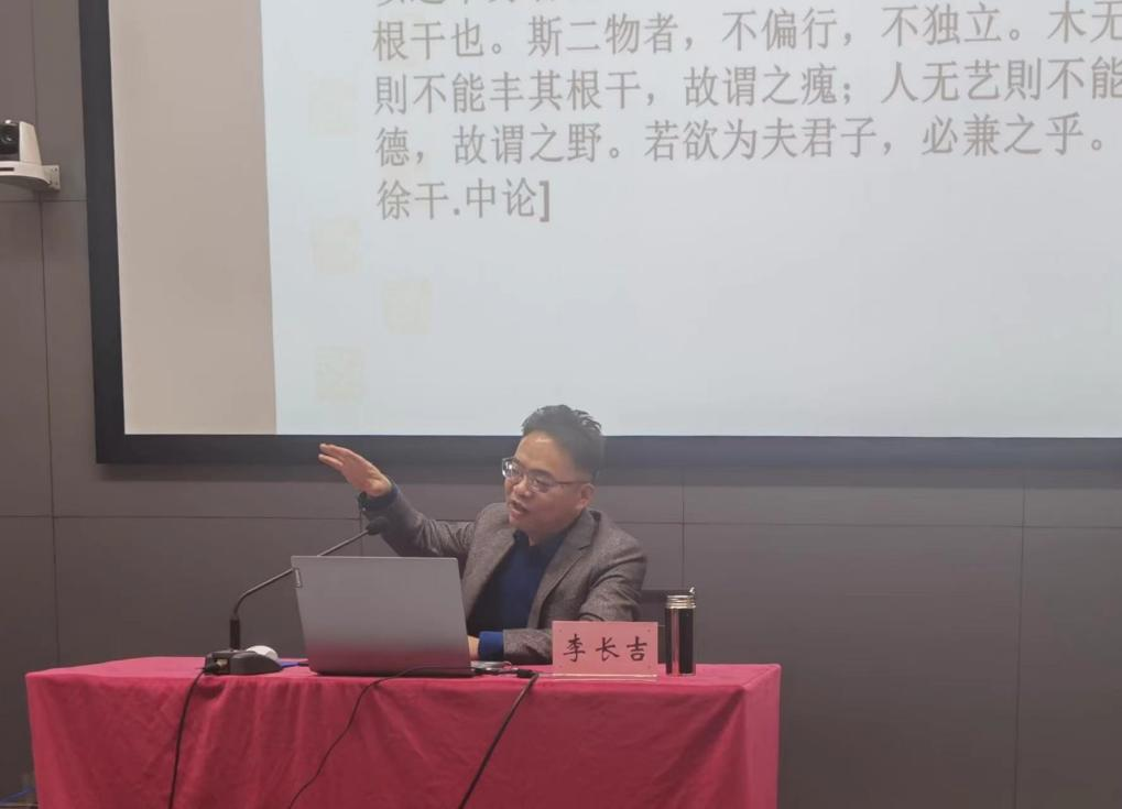 李长吉教授引用经史典籍,分别从六个方面阐述了“立德树人”的本真意蕴:一是思想探源,中华民族历来秉持着“尚德”的思想,随时代变迁这一思想扩展到教育领域,形成了“立德树人”的教育理念;二是词语理解,“立德”一词最早出现在《左传》中,寓意规约人的思想和行动,“树人”一词最早出现在《管子·权修》中,体现了重视人才培养的思想;三是“立德”与“树人”并列、引领、交互一体的关系分析;四是目标指向,即“立德树人”的教育活动培养什么样的人;五是实践诉求,应从教育系统内部和国家社会两个层面推动“立德树人”教育理念的落实;六是“立德树人”的启示性作用,“德”乃立人之根本,是中华民族的精神归属,“德育”应在每一位教师心中扎根。李教授强调,教师在注重学生道德养成的同时,也要努力提升学生的才干,形而上与形而下兼修。