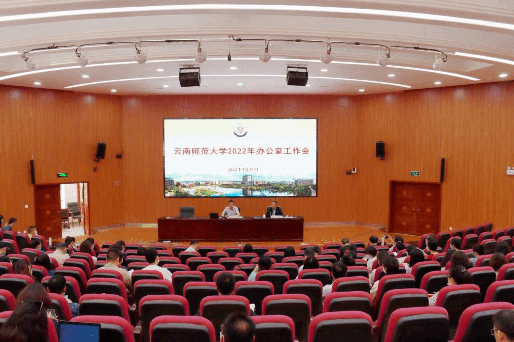 为贯彻省委、省政府作风革命效能革命决策部署,落实省委教育工委、省教育厅印发的推进作风革命加强机关效能建设20条措施要求,进一步强化办公室工作的规范运转,2022年4月28日下午,学校2022年办公室工作会在呈贡校区汇学2幢101报告厅召开,联大校区明远楼101报告厅设分会场,各学院(学部)、各部门分管办公室工作的领导,办公室主任、综合事务科科长,各单位负责党委会、党总支、直属党支部、党政联席会会议记录的同志参加会议。会议由校长办公室主任吴雁江主持。