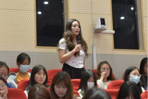 讲座伊始,张叶老师讲述了大学生应该明确自己的奋斗目标,她结合自身的创业经历给同学们讲述就业创业的关键,指导同学们如何创业就业。谈到就业时她认为要先找到自己的生存位置,根据自己的理想、目标,选择适合自己发展的方向。其次,大学生应根据自己的特长、市场需求及积累的人脉资源,找到自己创业的切入点。最后,张叶老师总结到:“人生目标不是一蹴而就,利他、付出、先舍后得,越付出越得到!”