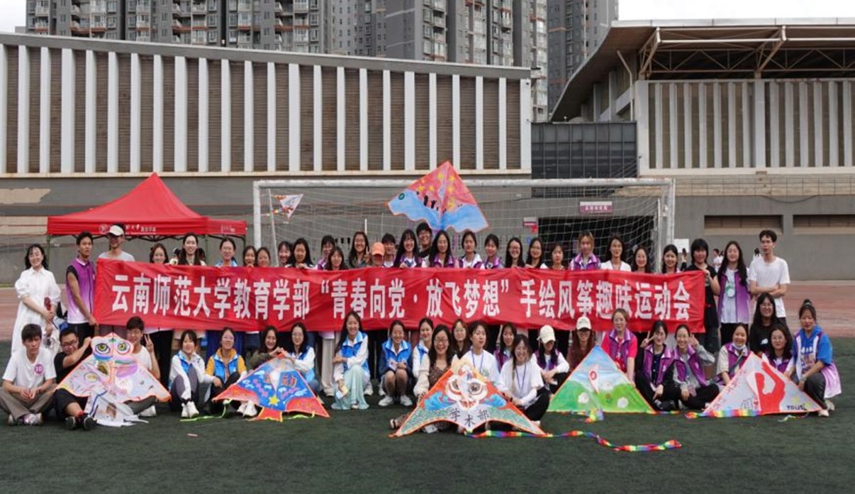 为丰富同学们的校园文化生活,增进宿舍成员之间的凝聚力和向心力,展现大学生积极向上的精神面貌, 教育学部于519日下午在西区田径场举办青春向党 放飞梦想手绘风筝趣味运动会。此次风筝趣味运动会面向呈贡主校区全体学生,以宿舍为单位参加。共有来自9个学院(学部)的31间宿舍共170余名同学参加。教育学部党委副书记朱静虹,辅导员唐琳等师生担任本次活动的评委。