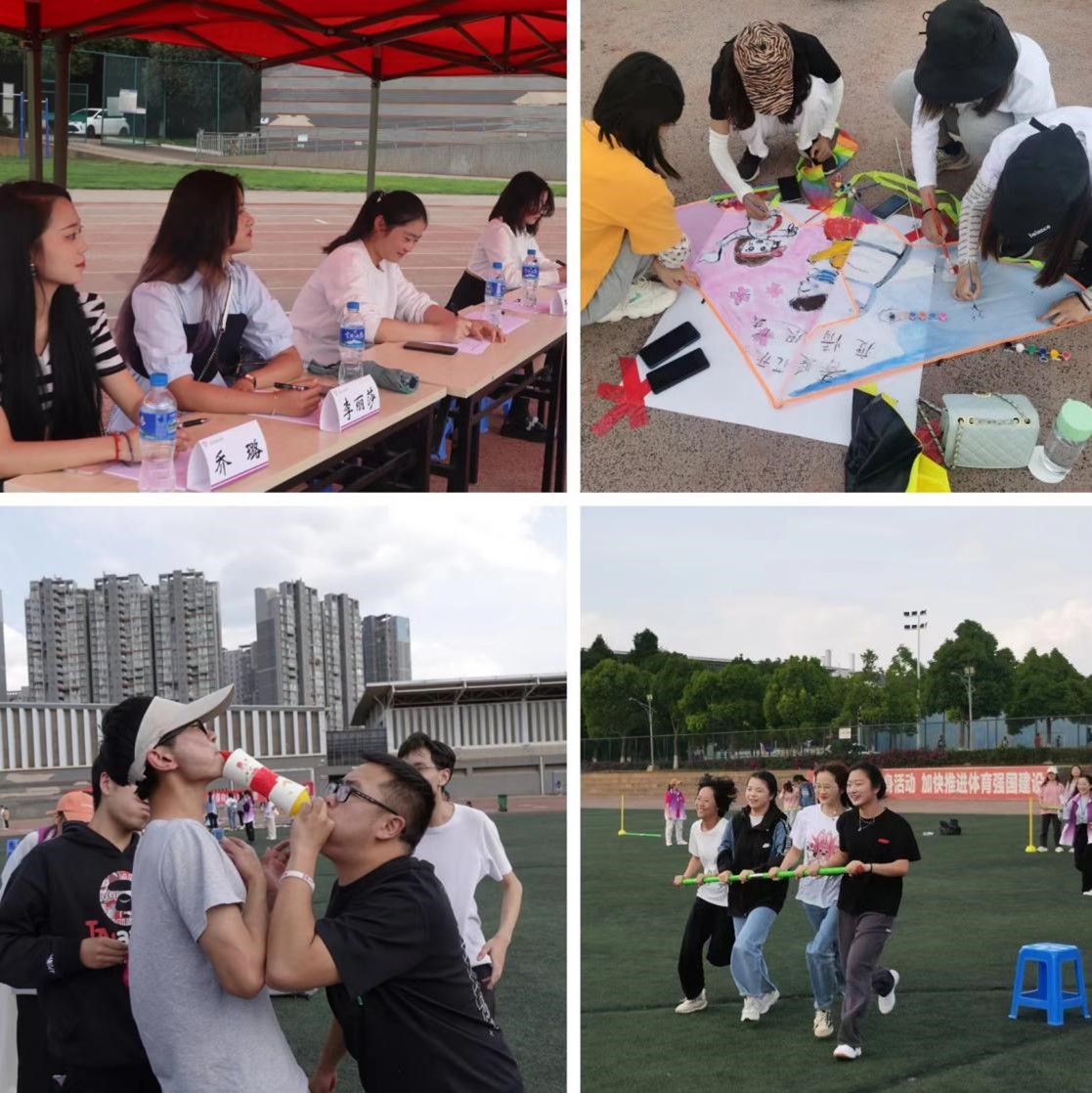 此次趣味运动会共有四个环节,分别为手绘风筝、集体讲解、集体合照和趣味运动。各队领取风筝后,限时三十分钟结合活动主题进行手绘创作;随后,对创作内容进行讲解,内容积极向上、精彩纷呈;讲解结束后进行集体合照,最后到闯关区域完成旋风跑、气球传纸杯、50米风筝迎面接力。每支队伍齐心配合,团结协作,运动场上是青春洋溢的笑脸。
