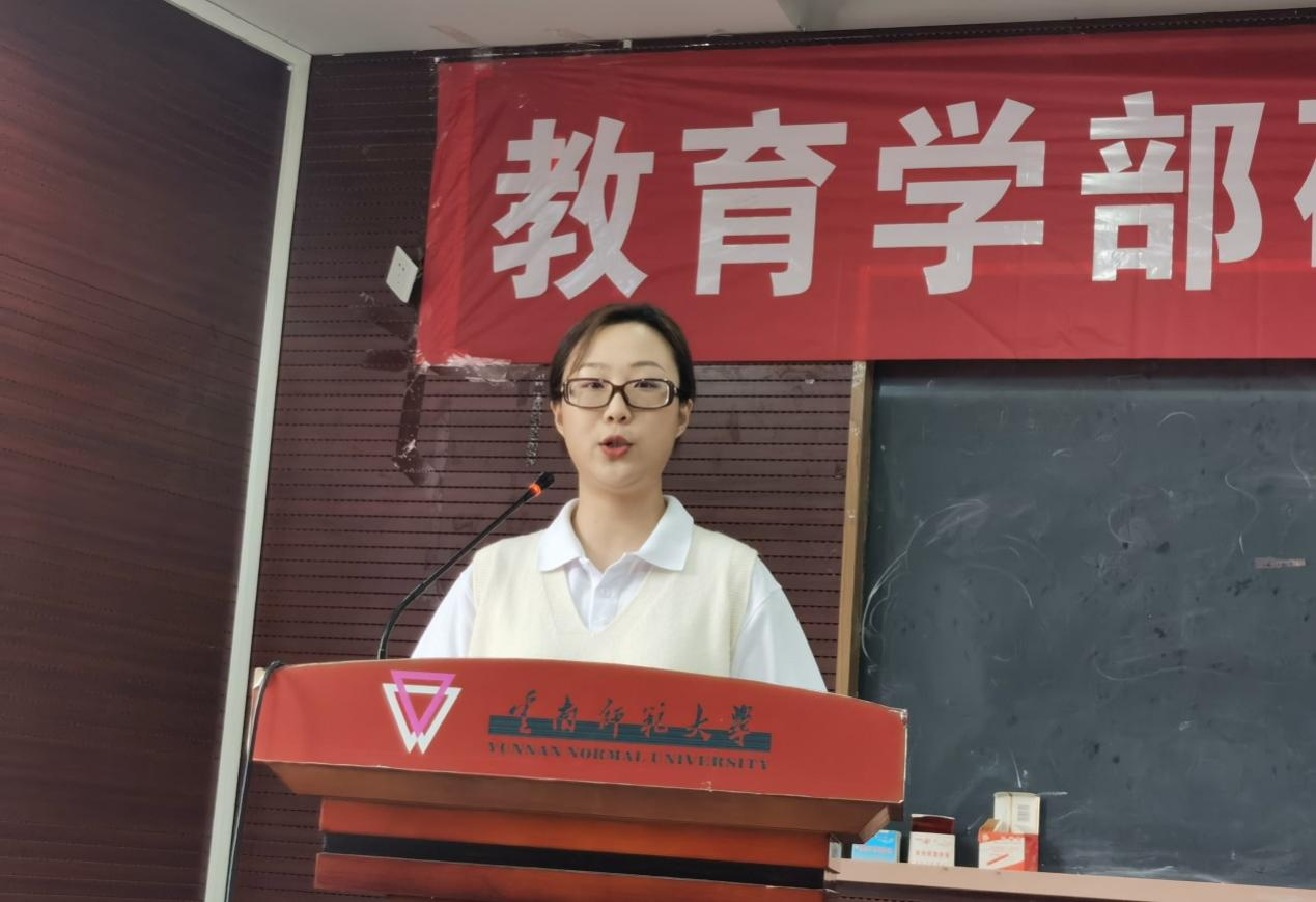 2021级应用心理专业田静娴同学作为团员代表发言认为合唱的魅力就在于它能让合唱者体会到艺术之美、和谐之美、生活之美,合唱团的成立给了大家一个展示自我的舞台,希望通过参加合唱团,能够丰富自己的校园生活,为宝贵的青春岁月增添一笔靓丽的色彩