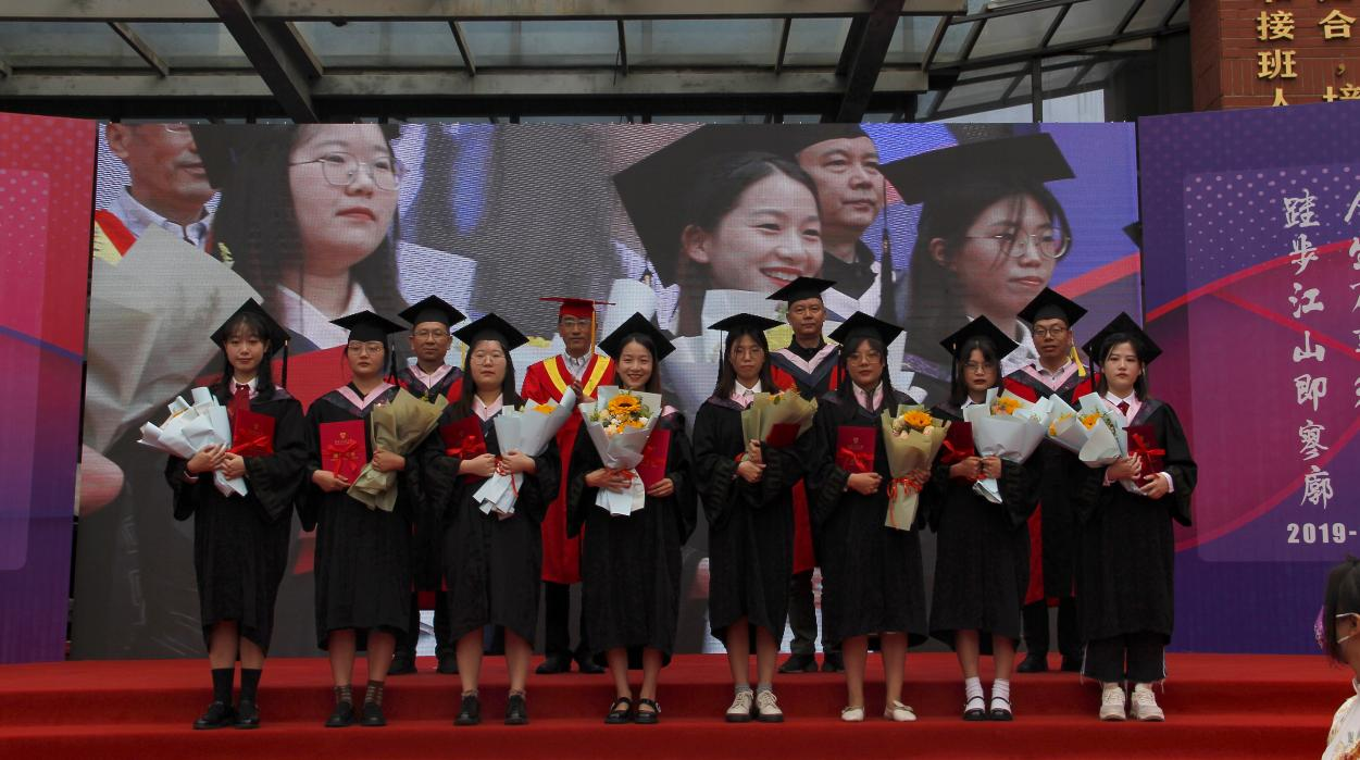 余明九书记宣读了2022届省级、校级优秀毕业生的表彰决定。郝缘君、杨雨蒙、袁晓云等16名毕业生荣获“省级优秀毕业生”称号,王道顶、郝缘君、张亚皎等32名毕业生荣获“校级优秀毕业生”称号。参加典礼的领导为获奖学生代表颁发了荣誉证书。