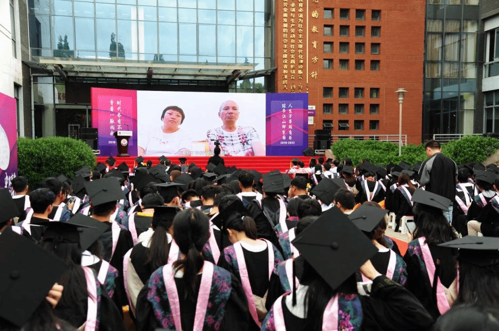 受疫情影响,不能亲临现场分享毕业生荣耀的父母们通过视频的方式送上了最诚挚的祝福。家长们的祝福真挚而又朴素。当现场毕业生们看到屏幕上的父母时,无不惊喜又感动。