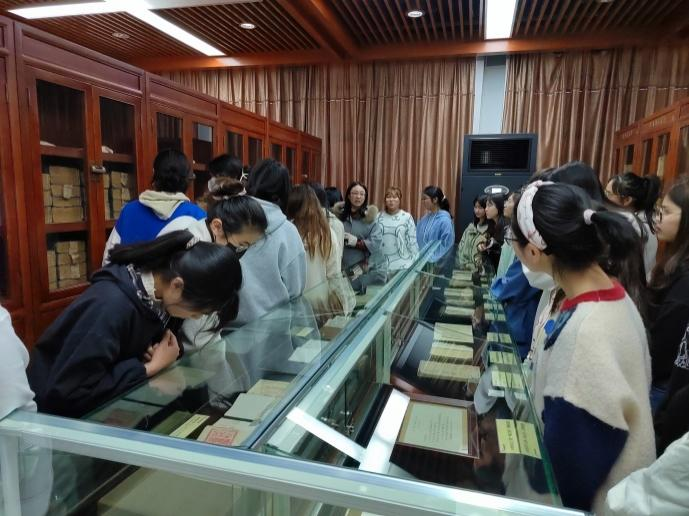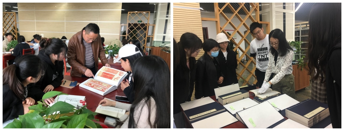 在开展课堂教学的同时,图书馆还组织同学们实地参观了古籍与西南联大特藏书库,与古籍文献真实“互动”,感受历史与文化的气息,亲见一本本斑驳的联大特藏实物,同学们不时询问这些藏书的年代、来历、如何收藏、如何保护等问题,极大地调动了他们学习与研究的积极性。