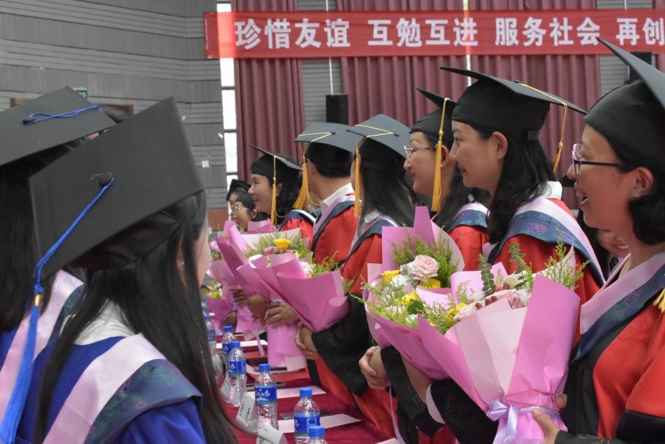 随后,毕业生代表们为在场的老师献花,以感激老师们四年来的谆谆教导。