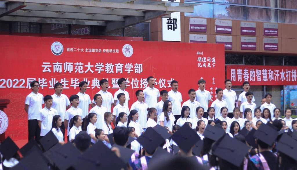 毕业典礼在学部副主任王文军老师伴奏、教育学部合唱团演唱的《毕业歌》中落下帷幕。