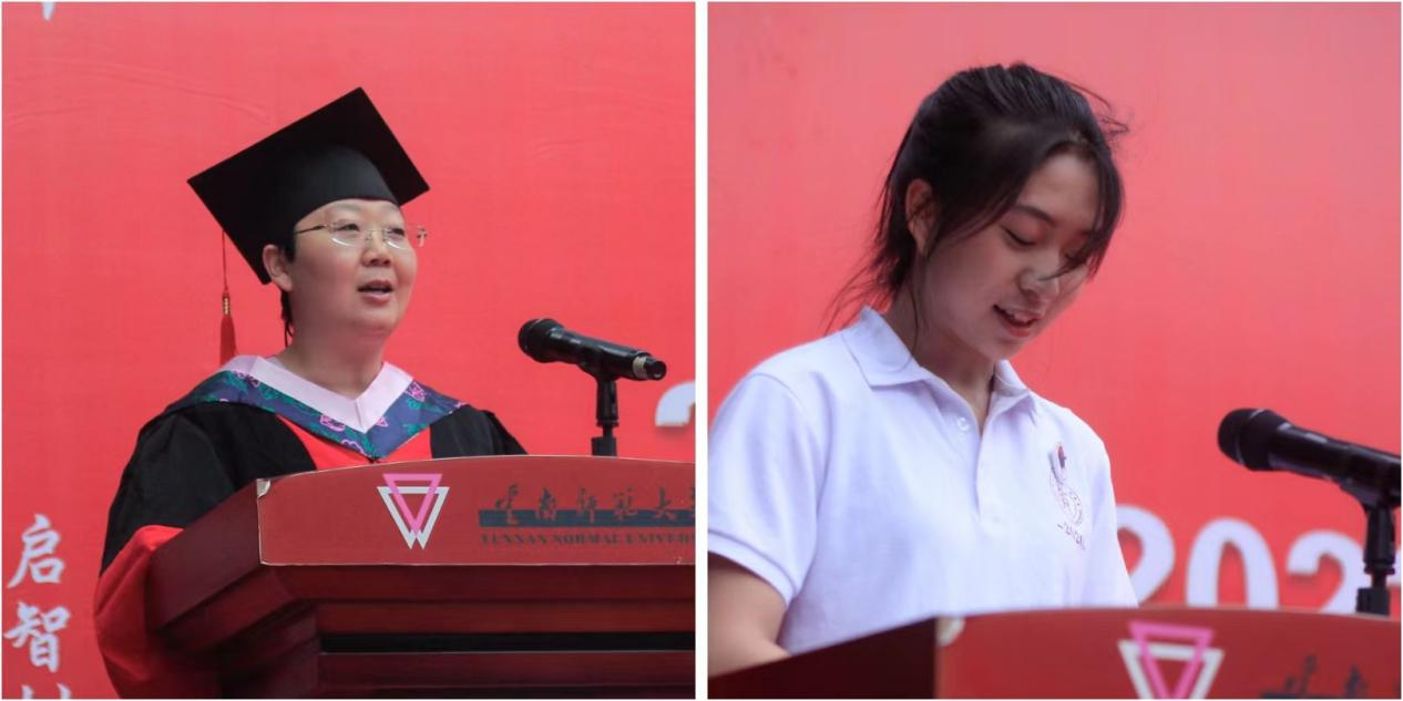 2018级课程与教学专业博士研究生芈莹和2020级教育学专业本科生张娜同学作为代表毕业生发言,认为教育学部是大家共同的家,向学校、学部、老师和同学们表达感谢