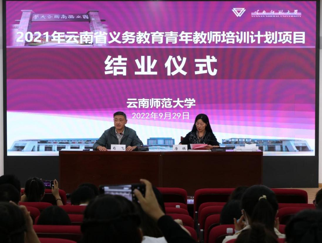 9月29日,2021年云南省义务教育青年教师培训计划项目云南师范大学小学数学班(第一批)集中培训结业仪式在我校一二一校区举行。此次培训时间从8月20日至9月30日,来自全省16个州市的200名小学数学青年教师参加了此次培训。继续教育学院党委书记肖飞、院长唐瑛参加结业仪式。