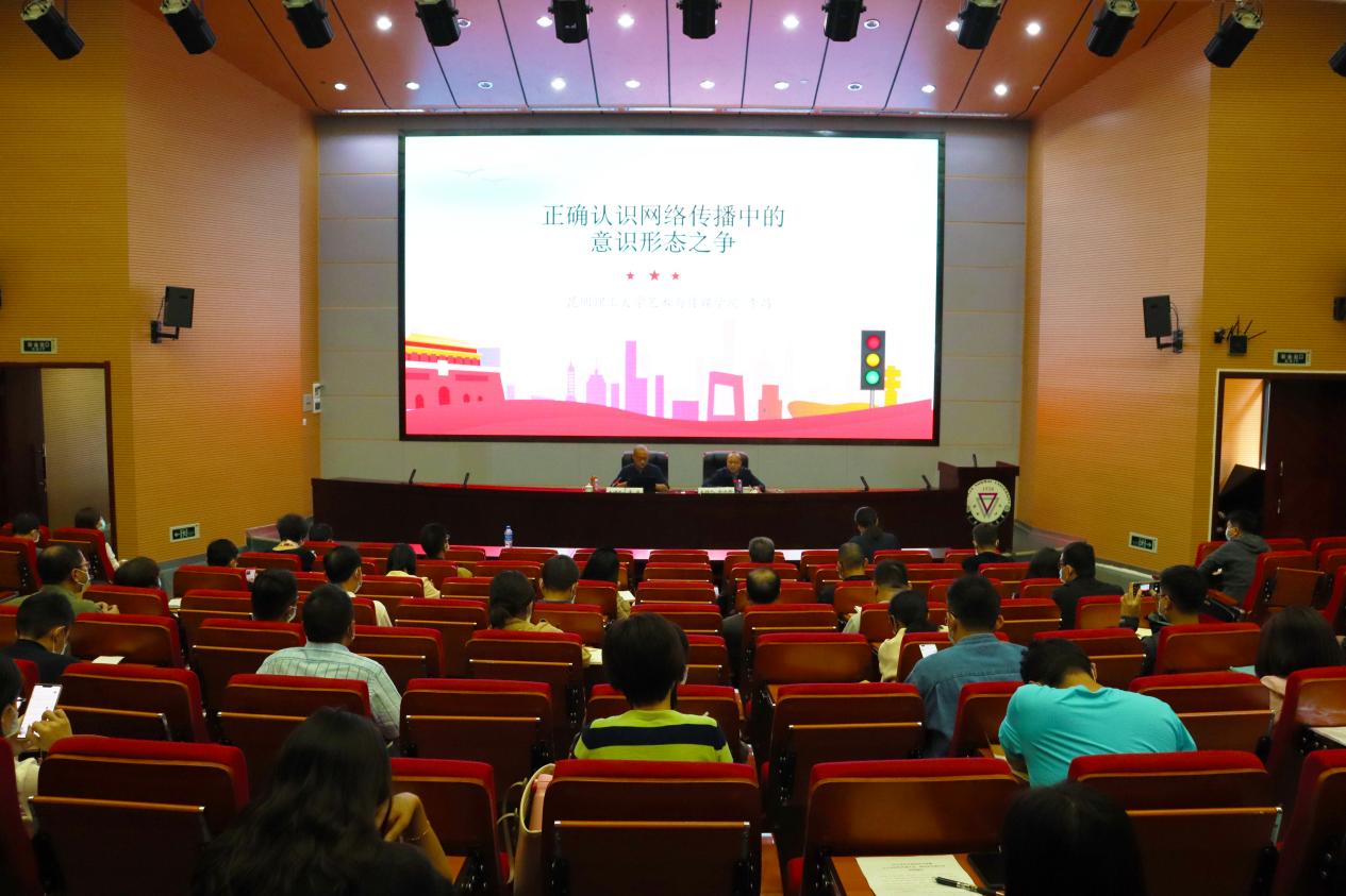 10月6日下午,“云岭大讲堂·云南师大讲坛”第四讲在呈贡校区西边中心报告厅开讲。昆明理工大学李昌教授为大家带来“正确认识网络传播中的意识形态之争”专题宣讲。各单位分管意识形态工作领导及各学院(部)学生工作办公室主任、团委书记参加讲座。讲座由党委宣传部部长余冰释主持。