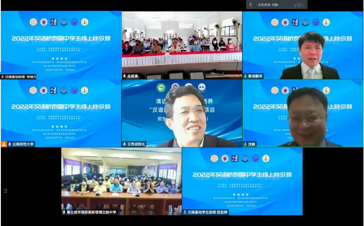 10月15日,由教育部中外语言交流合作中心主办,云南师范大学国际汉语教育学院承办的2022年“汉语桥”泰国中学生线上秋令营结营。