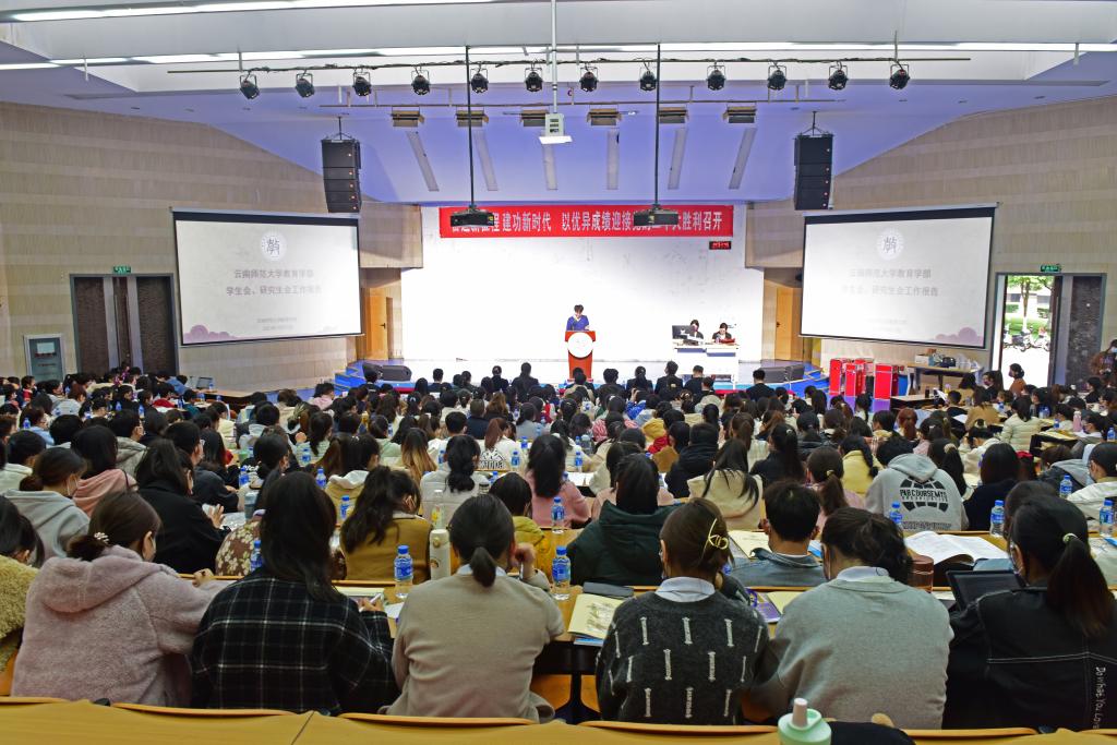 喜迎二十大,永远跟党走,奋进新征程。10月15日,我校教育学部第四次学生代表大会和第四次研究生代表大会在呈贡主校区汇文楼报告厅召开。教育学部党委书记禹紫灵、党委副书记朱静虹、团委副书记闫晓飞以及教育学部本科生、研究生辅导员,云南师范大学学生委员会、云南师范大学研究生会、各学院学生会代表应邀出席大会。