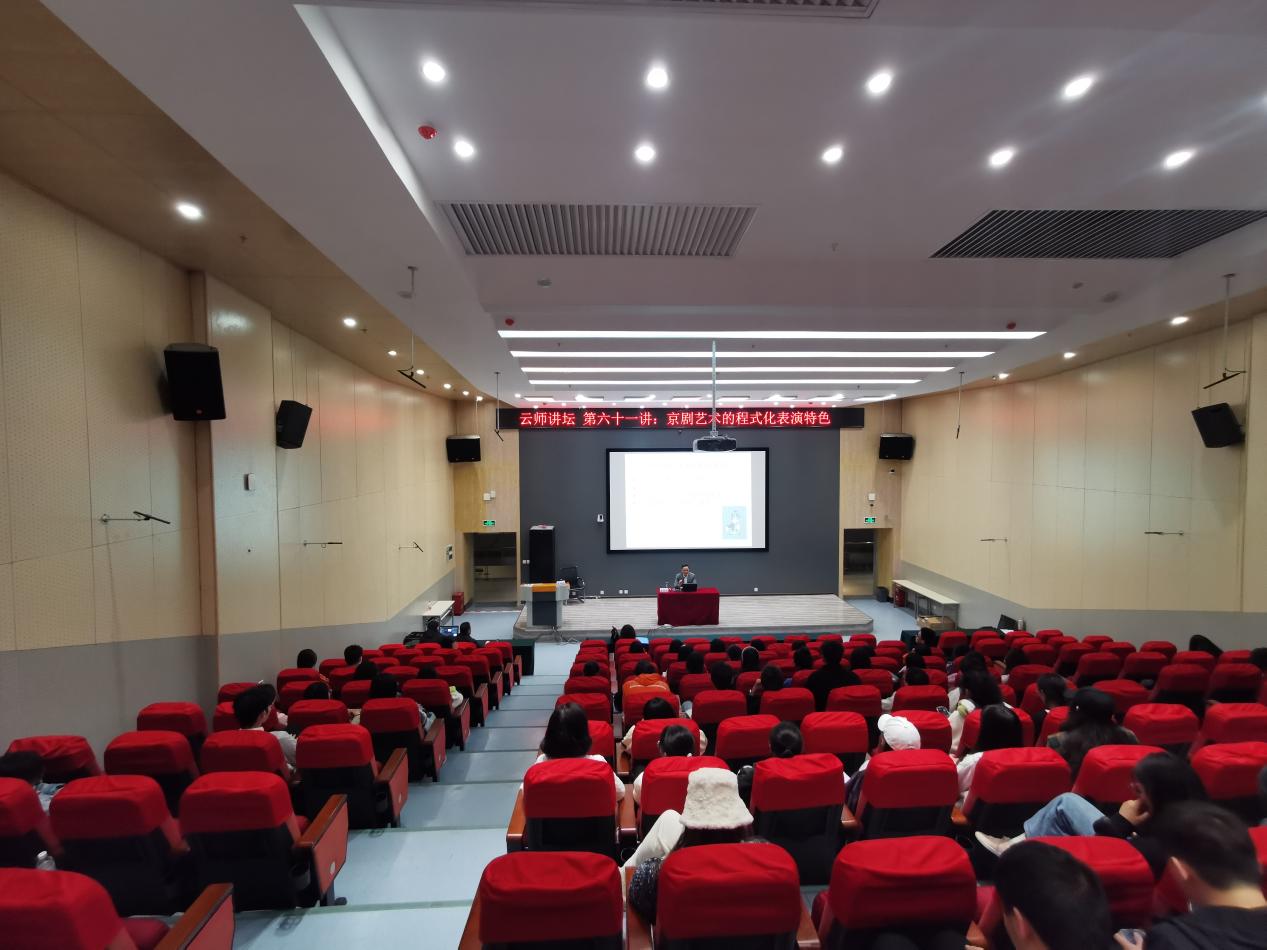 10月21日晚,云师讲坛第六十一讲在我校呈贡主校区教师教育国家实验教学示范中心214报告厅如期举行。云南省京剧院副院长朱福为师生们带来了“京剧艺术的程式化表演特色”主题讲座,讲座由公共艺术教育中心副主任何纾主持,线上线下约百余名师生聆听讲座。