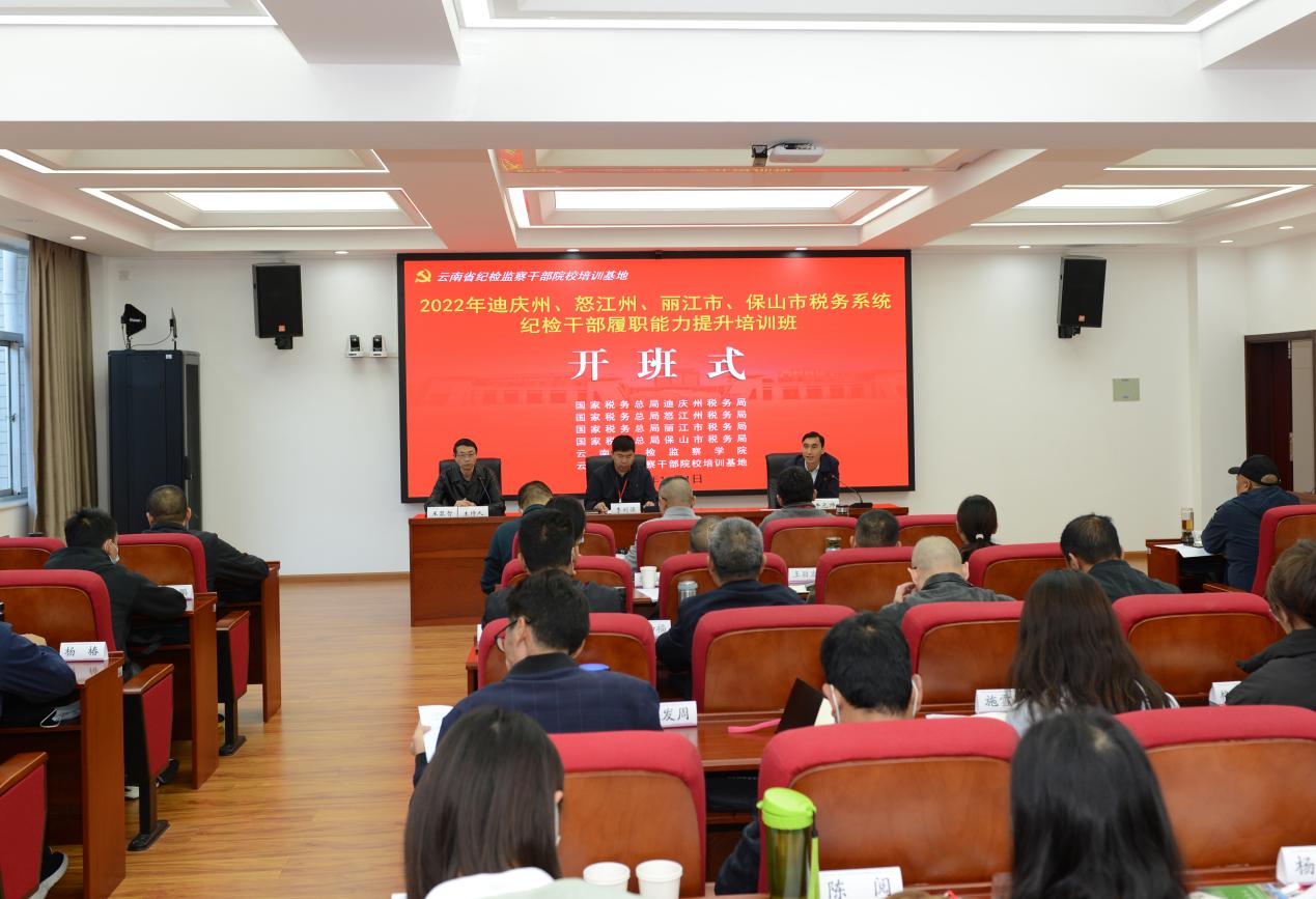10月31日至11月3日,由云南省纪检干部院校培训基地承办的2022年迪庆州、怒江州、丽江市、保山市税务系统纪检干部履职能力提升培训班在我校一二·一校区举办。80名税务系统纪检监察干部以及云南省纪检干部院校培训基地相关人员参加了开班式。