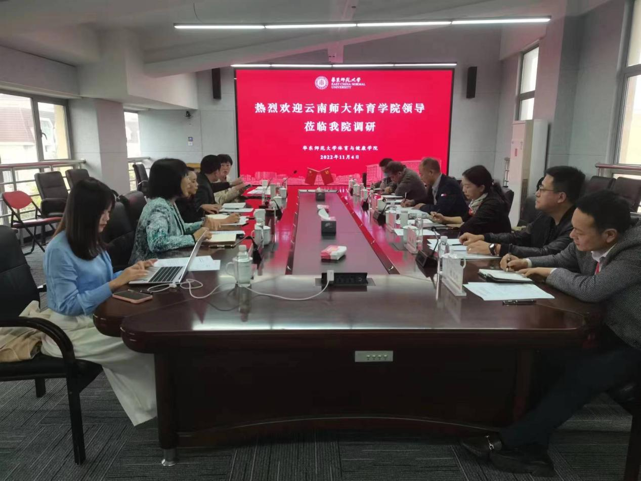 华东师范大学体育与健康学院书记黄岚兰、副院长陈海涛对云南师范大学体育学院的到来表示欢迎,并介绍了学院基本情况。董翠香教授和李琳教授分别对体育教育和运动训练专业从人才培养方案、课程体系、人才培养质量、就业等建设的情况进行了全面介绍和经验分享。华致雄希望在两所学校搭建的合作平台基础上,进一步加强两个学院的合作与交流,为学院学科及专业建设等提供精准帮扶与支持。