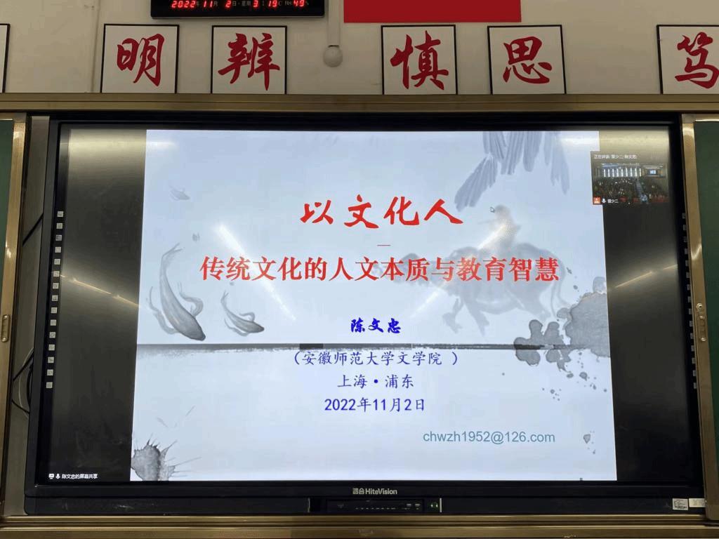 11月2日,云南省“万名校长培训计划”第八期“名家讲座”第二十二讲在云南师范大学呈贡校区举行。安徽师范大学文学院教授,博士生导师陈文忠作了题为《传统文化的人文本质与教育智慧》专题讲座。