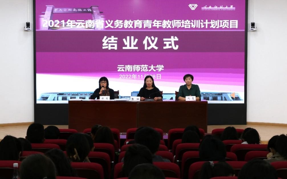 11月28日,继续教育学院在一二·一西南联大校区明远楼报告厅分学段举行了培训班结业仪式,院长唐瑛参加小学数学班、副院长刘应兰参加初中数学班仪式,并和班主任一起为学员颁发证书。结业仪式上,唐瑛对本次培训的整体情况及课程效果作了总结和反馈;刘应兰强调了疫情防控相关要求,叮嘱学员在返程中做好个人防护,遵守属地管理规定。
